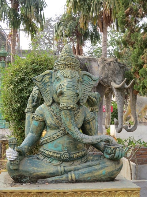 by naive statues of Buddhas and crocodiles and the Naga, a many-headed snake.