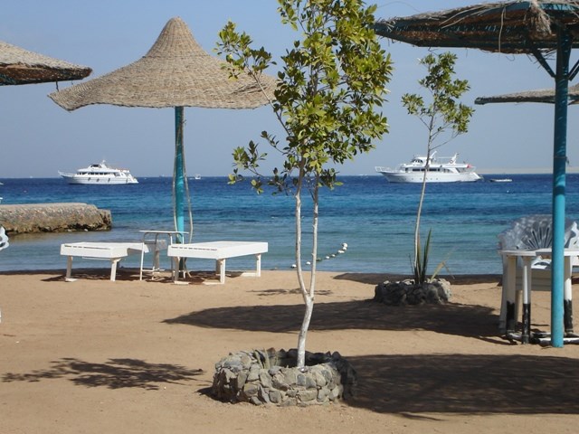 We were in Hurghada by 14h00 – making for an easy day’s travel. We local taxied and walked to the Golden Sun Hotel. A young teen was responsible for touting for passengers, letting them on and off and taking their money. We had been offered help on the street when we had been trying to figure out where we were, and had been told then that the minibus taxi should cost LE1 each. So when the young man said the price was “3, 3”, I said “no, 1, 1” and he said “OK”.