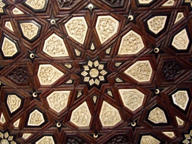 mashrabiyyas (carved wooden screens on the windows) in the Ottoman style. With Christian art artfully displayed on two floors.