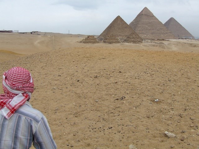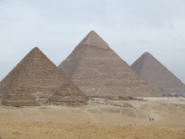 Then back to Giza where we took a guided ride on Aziz and Mickey Mouse to view the pyramids from a distant and different angle. Riding a camel is not particularly comfortable, so one hour on board sufficed – both our need to have at least taken the ride and to have seen those amazing structures (the three biggies as well as the six smaller queens’ pyramids) once more.