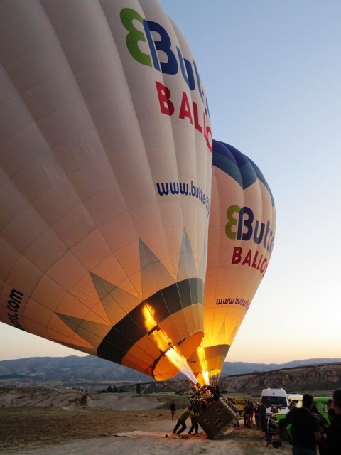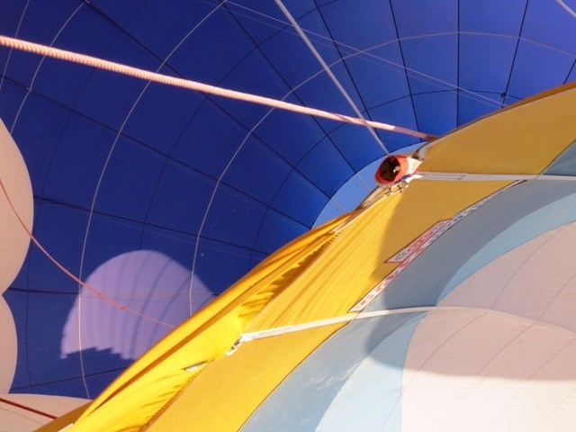 pilot, seeking a favourable wind, fills the balloon with hot air, all gas and