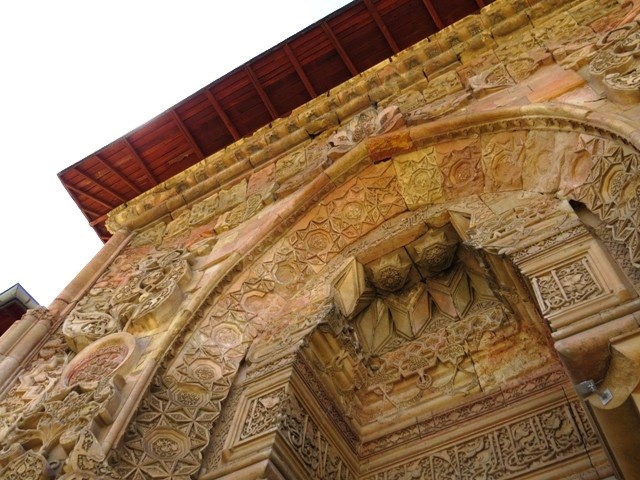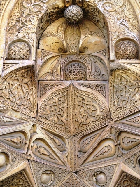 carvings around the entrances to the mosque and hospital that demand your