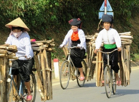 they reach the opposite verge; hilltribe women, mainly the TaiDam in their long