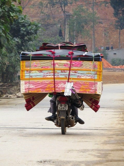 mattresses on the back of a scooter. Enterprising people, the Vietnamese.