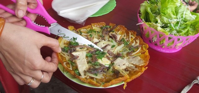 were introduced to banh xeo, a rice batter “sizzling cake” topped with meat and