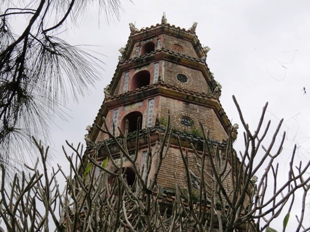 along the Perfume River to pay a late-morning visit to the Thien Mu Pagoda, built