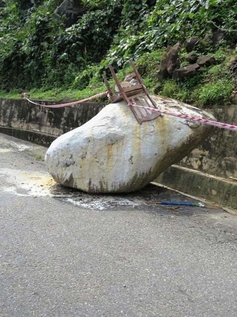 Hai Van Pass - rock in road