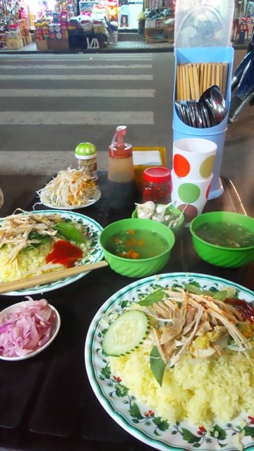 plastic table brought along by the vendor. Last night we dined well on rice and
