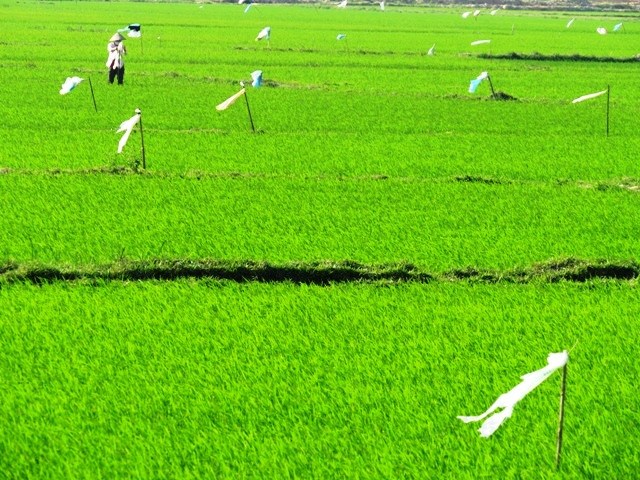 in new-green rice paddies stretching to the far hills and back. One could spend