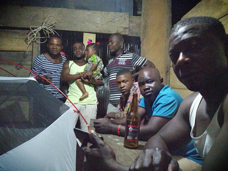 Many of the workers at the camp spoke English, Mr Kelvin taking us under his wing. One Chinese engineer who speaks neither English nor French is in charge of the highway project, employing locals, many of whom live at the camp, some with wives and children. The rooms are constructed of corrugated tin and wood. A generator provides electricity until 21:30, when the camp is plunged into darkness and relative quiet. Water is delivered to the camp and stored for bucket baths and loo flushing. The loos follow a similar design to one we once saw in China, though the Chinese version was constructed of stainless steel, this one of cement. One channel is dug and cemented and runs through several cubicles. You squat astride the channel, your back to the longer length of the cubicle. Anything deposited in the channel, flows through subsequent cubicles and out a communal hole. Mr Kelvin provided us each with a bucket of water. You bathe over the channel too, flushing it with bath water.