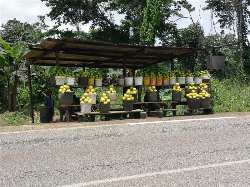 A jack hammer at work in our room last night would have been only marginally louder than the disco below us on opening night, with dancing until 05:00. So loud was the music, and so insistent the base, that our bed vibrated (not nearly as pleasant as that may sound). Our host told us this morning that the loud music was intended to attract customers to the admittedly up-market venue. The old bar across the road, not to be outdone, too upped its music volume. Between the two and the fan running in our room to cool it, it was a strident night. We managed to get some sleep, but not as much as we would have liked. We are thrilled to find that the Le Jardin d’Eden is sited away from the main street through Pouma, in a quiet garden setting with only birds disrupting the stillness. A little overpriced at 20,000CFA, we were glad to negotiate the price down to 15,000CFA.