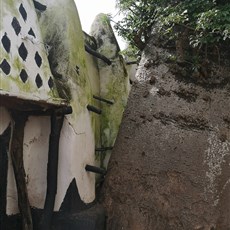 The mosque has an old Quran, believed by the locals to have been given as a gift from heaven in 1650 to Yidan Barimah Bramah, the Imam at the time, as a result of his prayers. The mosque, built with mud and reeds, has two tall towers in pyramidal shape, one for the mihrab which faces towards Mecca forming the facade on the east and the other as a minaret in the northeast corner. These are buttressed by twelve bulbous shaped structures, which are fitted with timber elements. According to a legend, in 1421, an Islamic trader named Ayuba had a dream while staying here, near a "Mystic Stone", instructing him to build a mosque. Strangely, when he awoke, he found that the foundations were already in place and he proceeded to construct the mosque until it was completed. There is a belief that he left instructions that he should be buried close to the mosque and that after three days, the baobab which would shoot up on his grave was to be preserved from generation to generation. The baobab tree next to the mosque today is reputed to mark the site of Ayuba's grave. The townsfolk of Larabanga supposedly depend on the leaves and stem of this baobab tree for healing of ailments … Larabanga is one of eight ancient and highly revered mosques in Ghana, and is also the oldest. It is a place of pilgrimage and is considered the Mecca of West Africa.