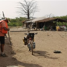 We travelled a dirt road from Buba to Enxude, often too sandy for comfort, somewhere along the route slip-sliding Charl from his bike for his scheduled monthly fall! Travelled through small villages and towns, generating collective near-hysteria on occasion among children yelling “branco” (white), and desperate to touch our skin. Most kids want to greet and touch and be photographed and view their images. Some scream and run and fall in terror. Three small kids ran from me to behind the huts of their homestead, clearly in search of adult succour. I brought my bike to a halt, hoping to change their perception, and soon the adults of the family came over to me carrying the distraught kids on their hips. I spent time talking to them in a soft voice, and eventually all three stopped crying and shook my hand, though none relaxed sufficiently to smile.
