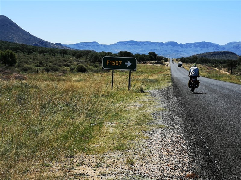 In truth, had we not been so exhausted, the last 11km into Windhoek would have been easy, being predominantly downhill, a run taking one past Heroes Acre*. But we were not to have it easy … added to our tiredness, was a puncture courtesy of a large camelthorn, and peak hour traffic with an annoying detour off the jam-packed B1. But Google Maps got us to our backpackers in the end, 11 hours after leaving Rehoboth.