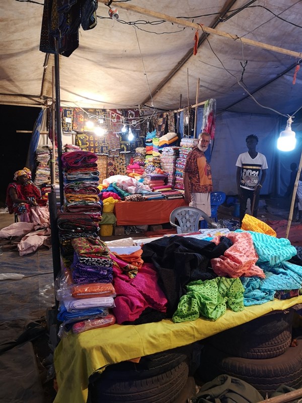 Then we took a walk into town to buy Orange SIMs and data from a small metal booth on a dark sidewalk. Senegal is one of the countries that registers your SIM purchase, needing proof of identity and an address, etc. A slow process, but cheerfully done by a man who had to light his booth with the “torch” on his mobile.