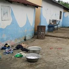 Atakpamé - drawing water for our bucket bath
